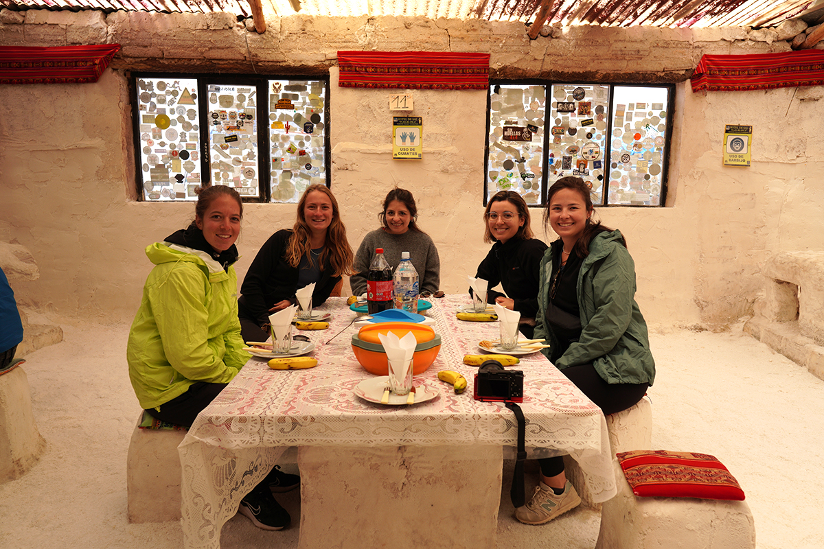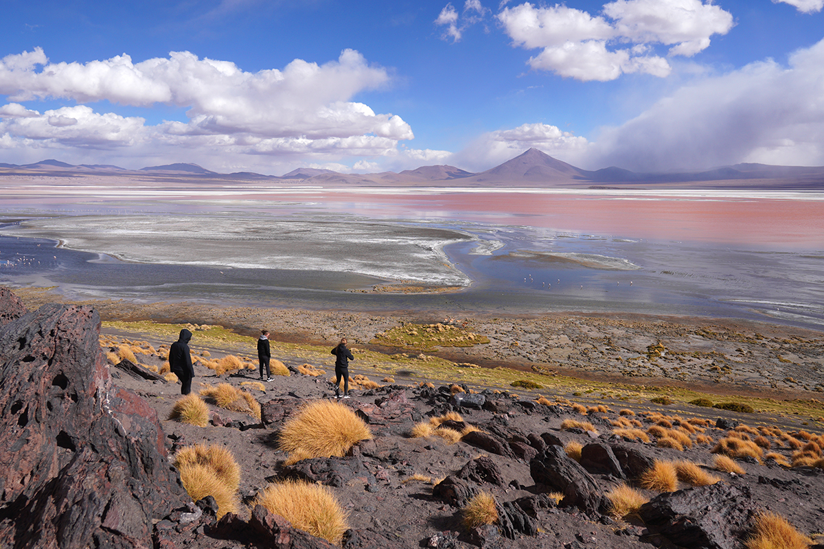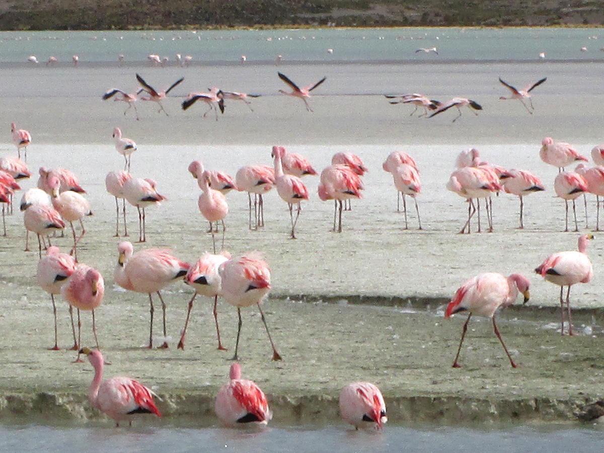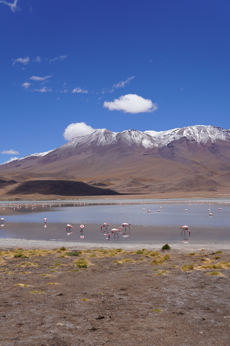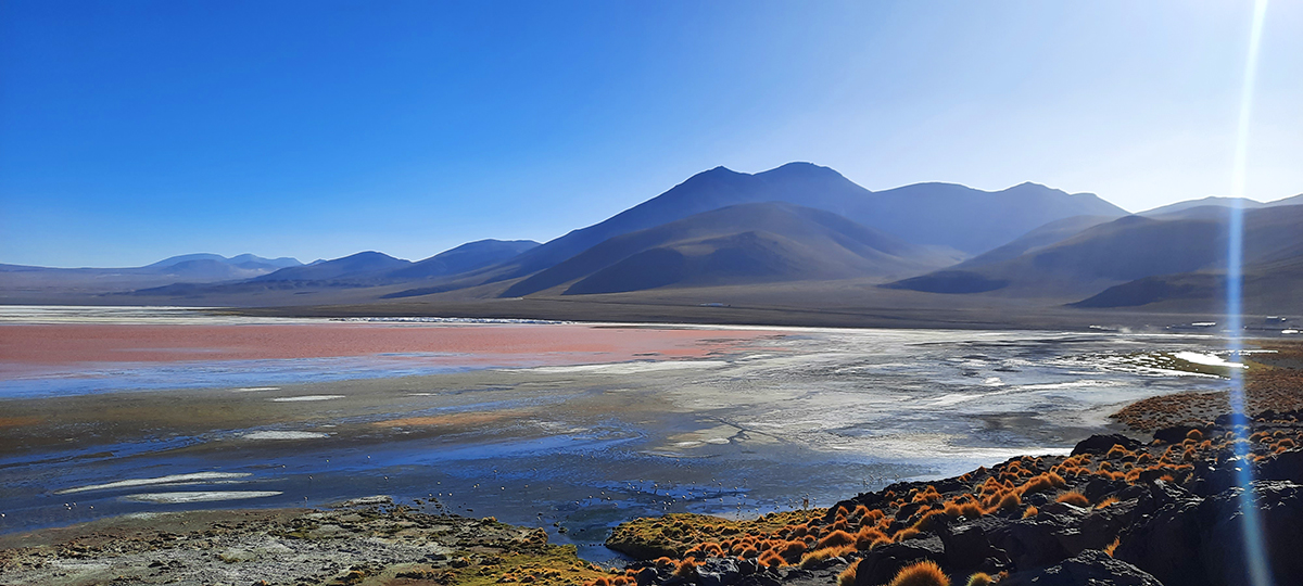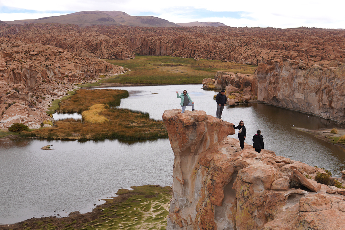 Salida 7:30 primera parada en el Salar de Chiguana. Es un salar pequeño que contiene salitre y también existen pequeños depósitos de minerales como el bórax. Luego nos dirigimos hacia al Mirador del volcán Ollague. Desde donde se puede contemplar un paisaje desértico, volcánico se puede observar a lo lejos el volcán semi activo. Luego vamos a la primera laguna altiplánica Laguna Cañapa. Se encuentra rodeada de volcanes, es habitada por flamencos, es una laguna de agua salada después seguimos a la Laguna Hedionda. Es una laguna donde se puede apreciar los flamencos de cerca. Se encuentra a los pies de los cerros huele a azufre quemado por ser una zona volcánica conteniendo en sus aguas estos residuos posteriormente visitamos la Laguna Honda. Es una laguna profunda donde también habitan flamencos. Seguidamente ingresamos a la Reserva Nacional de Fauna Andina Eduardo Avaroa para visitar el Árbol de Piedra. Es una formación natural de Roca volcánica. Después vamos a la Laguna Colorada. Es un lago natural de color rojo y es la laguna más habitada por los flamencos de las tres especies. Continuando el recorrido pasamos por los Géiseres sol de mañana. Es un área volcánica dónde se puede ver geysers y fumarolas. Luego vamos al hospedaje cerca de las aguas termales (polques) Aguas termales. Estás aguas son calientes y naturales, dónde se puede ingresar en la noche y desde ahí poder ver las estrellas.