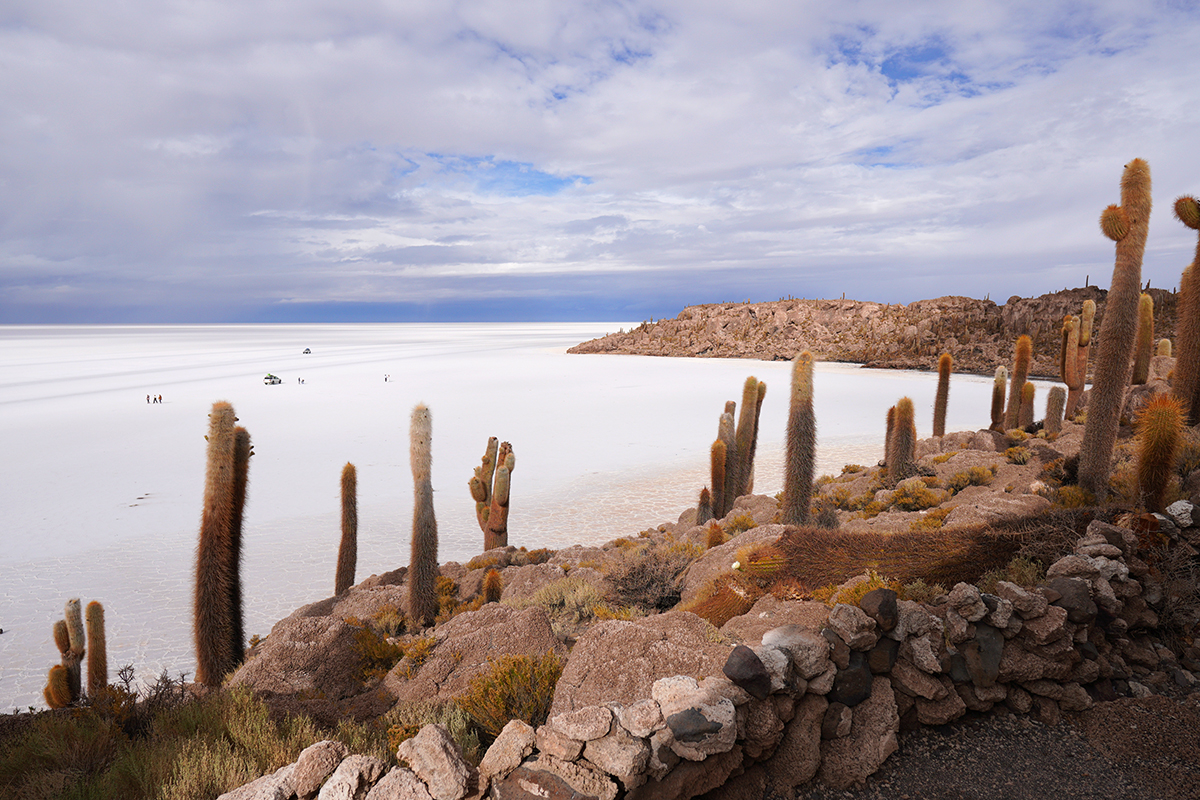 Partiendo más o menos a las 5 y 30 a.m. nos dirigimos al gran salar de Uyuni con una extensión de 12.000 km2, para observar el amanecer y la salida de sol en el salar y luego visitaremos la Isla Incahuasi situada en el centro del salar con una formación de rocas calcáreas y cactus gigantes, Continuando viaje en esta gran planicie de sal nos detenemos para una sesión de fotografía y videos con perspectiva, para luego llegar al primer hotel de sal playa blanca que hoy por hoy es un museo abierto, también observamos el monumento al Dakar, los Ojos del Salar, visitamos montones de sal, pueblo de Colchani , cementerio de trenes legando aprox. a las 13:00 p.m. a la Ciudad de Uyuni teniendo un almuerzo de despedida y fin del servicio en la oficina de LONELY PLANET TRAVEL.