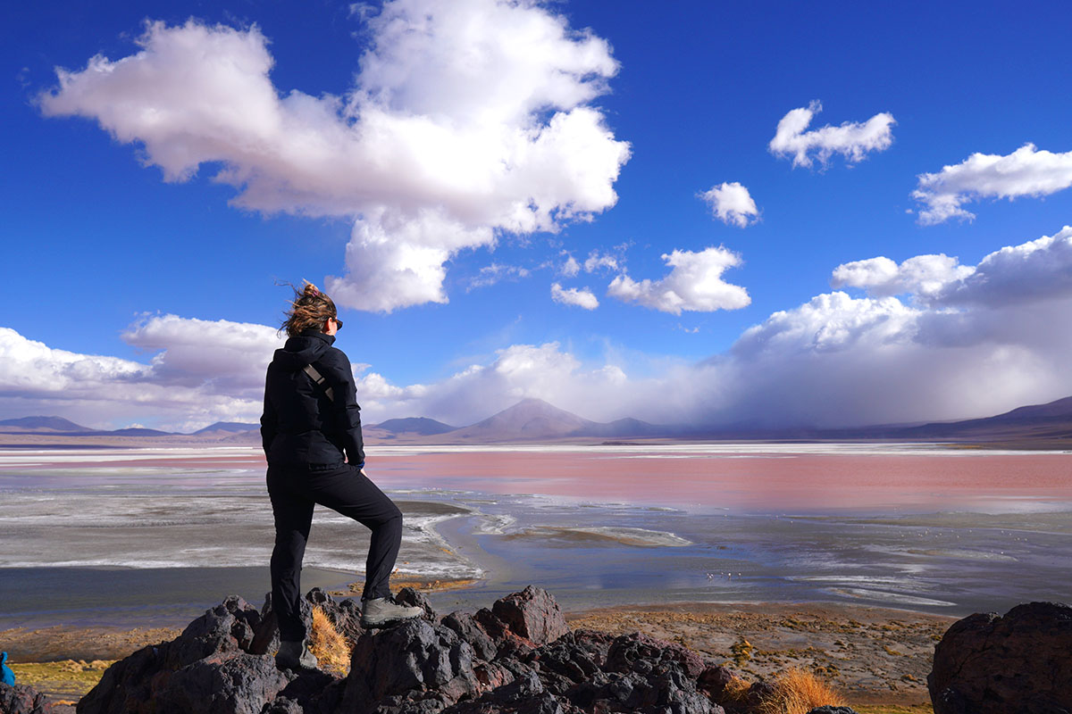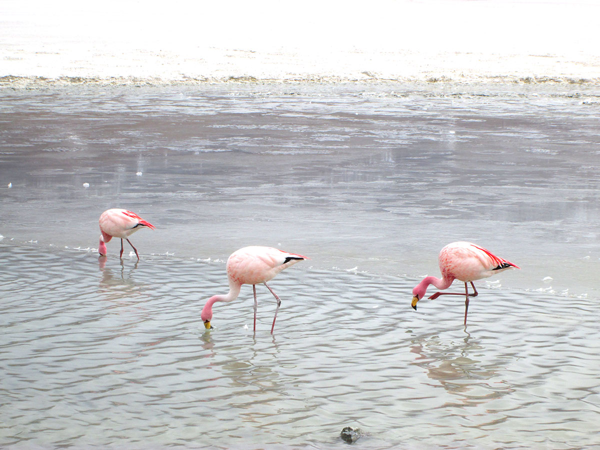 Este primer día hacemos la visita al altiplano boliviano a lugares como la laguna blanca, laguna verde, situados al pie del volcán Licancabur. Así, continuando visitamos el desierto de salvador dalí, las piscinas de aguas termales en polques, los geysers de sol de mañana fuentes intermitentes de agua que brotan a una temperatura de 90°C, grietas por donde salen las lavas volcánicas. Continuando viaje llegamos a laguna colorada, centro de anidación de más de 30000 flamencos de tres especies, esto está situado a una altura de 4.380 m.s.n.m. donde es posible contemplar flora y fauna, como flamencos, vicuñas y otros animales. Luego de visitar este maravilloso lugar nos dirigimos a la comunidad de Mallcu Villa Mar para pasar la noche en hostal con habitaciones dobles, tiples o matrimoniales.
