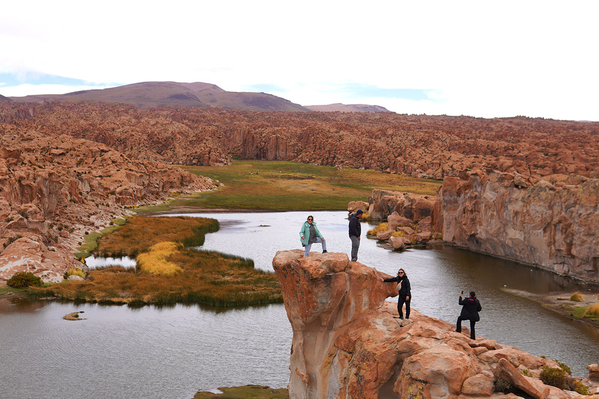Después del desayuno en el hostal nos dirigimos a Tomas Lakha para observar las pinturas rupestres preincaicas de la cultura Quechua, continuando nuestra travesía visitaremos interesantes formaciones de roca volcánica como la copa del mundo, el camello, italia perdida un fascinante lugar que parece haber sido una ciudad petrificada en donde tu imaginación juega un papel muy importante, luego nos dirigimos a laguna vinto en donde observaremos flamencos andinos. Continuamos viaje para llegar a un paraíso alto andino llamado laguna catal en donde tendremos una bonita caminata rodeado de rocas volcánicas en donde encontraremos muchas llamas, gansos andinos, curiosas vizcachas saltando sobre rocas y si prestas atención es posible que veas suris y el sigiloso zorro andino. Luego nos dirigimos al cañon de la anaconda en donde es posible veas el cóndor andino, también visitaremos el cañon de sora con bastante ganado camélido, continuando viaje cruzamos un pequeño salar de chiguana y finalmente llegamos al pueblo de Colcha K con habitaciones dobles y matrimoniales todos con ducha y baño privado.